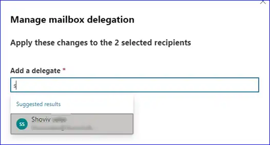 - A Manage mailbox delegation window will appear. Here, select the user to whom you assign the delegate rights.