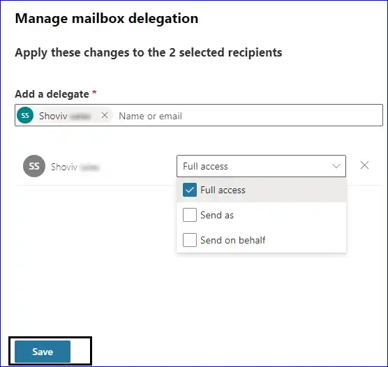 - After following the above-described procedure, you will successfully grant the mailbox access permission to the specific user.