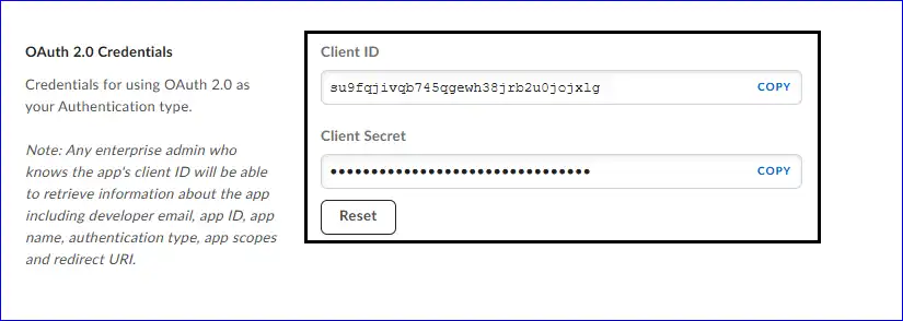 1. For the Box (Personal / Individual) Account: For the Box individual account, you need to provide the Client ID and Client Secret.
